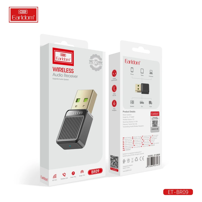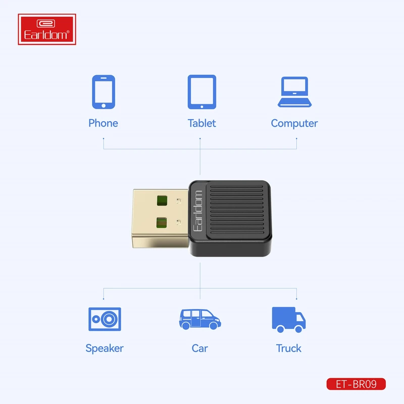 دانگل بلوتوث ضبط ماشین ارلدام پس از اتصال به دستگاه مورد نظر از طریق پورت USB، قابل استفاده بوده و برای کار با آن نیازی به نصب درایور و یا نرم افزار خاصی نخواهد بود. Earldom ET-BR09 با انواع دستگاهها مانند تلفنهای هوشمند و سیستمهای صوتی سازگار است. به علاوه برای بلندگوهای خودرو برای گوش دادن به موسیقی از تلفن همراه فوق العاده کارآمد است.