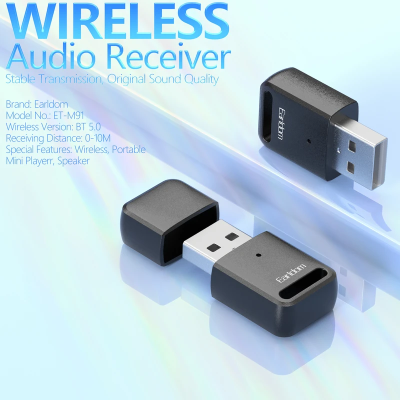دانگل بلوتوث ارلدام Earldom ET-M91 یک دانگل بلوتوث قدرتمند است برای انتقال صدا به دستگاه هایی که فاقد بلوتوث هستند. ET-M91 تمام نیازهای شما را برآورده میکند و بهترین راه حل برای فعال کردن بلوتوث ضبط ماشین و اسپیکرهایی است که به این فناوری پرکاربرد مجهز نشدهاند. این روزها استفاده از فناوری بلوتوث کاربردهای فراوانی پیدا کرده است. با استفاده از قابلیت بلوتوث می توانیم بدون نیاز به کابل، به راحتی موسیقی که روی گوشی پخش می کنیم را با دستگاه های دیگر مانند ضبط ماشین و اسپیکر به اشتراک بگذاریم. اگر این قابلیت روی ماشین شما فعال نیست، دانگل بلوتوث ارلدام مدل ET-M91 بهترین گزینه برای انتخاب است.