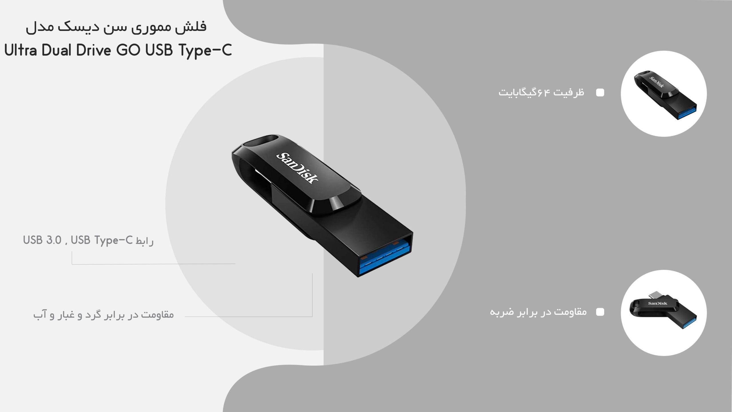 فلش مموری سن دیسک مدل Ultra Dual Drive GO USB Type-C ظرفیت 64 گیگابایت