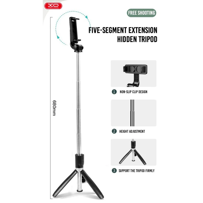 اگر علاوهبر علاقهمندی به گرفتن عکسهای سلفی به سهپایهای برای ثابت نگه داشتن تلفن همراهتان برای ضبط ویدئو نیاز دارید، بهجای خرید دو وسیلهی جداگانه، به مونوپاد و سهپایهی SS08 ایکس او اعتماد کنید! این محصول دوکاره از ABS و میلهی مستحکم و ضدزنگ استیل ساخته شدهاست. تنها 135 گرم وزن دارد و ابعاد آن در حالت جمعشده به 30×45×186 میلیمتر محدود است، پس مشکلی با جا دادن آن در کیف و کولهی خود و همراهبردنش در سفرها نخواهید داشت.مونوپاد و سهپایهی SS08 ایکس او، از گیرهای ضدلغزش، پایهای گسترشپذیر تا ارتفاع 680 میلیمتر و 3 پایهی پنهانشده در بدنه تشکیل شدهاست.گیرهی این دستگاه با قابلیت چرخش 360 درجه، به شما امکان میدهد تا بتوانید گوشی موبایل خود را هم در حالت عمودی و هم حالت افقی قرار دهید. همچنین میلهی این مونوپاد سهپایهدار دارای 5 ارتفاع متفاوت است. به این ترتیب میتوانید بهراحتی زاویهی دلخواه خود برای تصویربرداری را تنظیم کنید و از گرفتن عکسهایی با پسزمینهی گسترده یا ضبط ویدئوهای زنده لذت ببرید.
