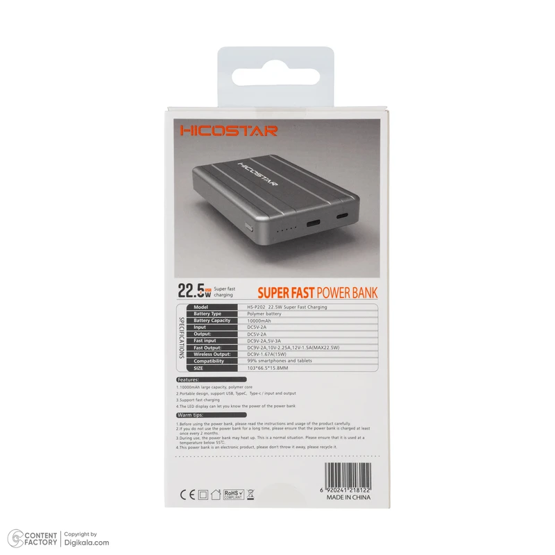 برچسب: پاوربانک بی سیم فست شارژ هایکو استار HS-P202 22.5w PD QC3.0 ظرفیت 10000 میلی آمپر ساعت
