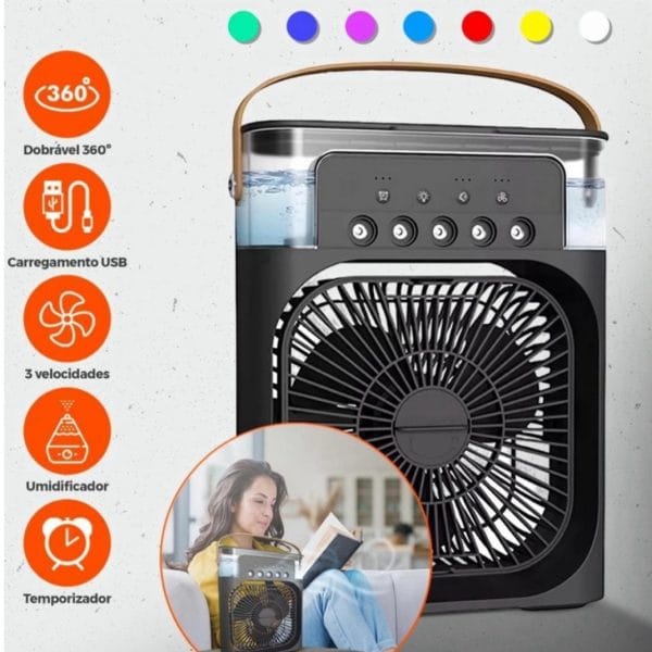 - سایر مشخصات: پنکه مه پاش رومیزی مدل Air Cooler Fan فاقد باتری است و به صورت مستقیم توسط آداپتور و کابل USB Type C به برق متصل میشود. دارای پنج نازل مه پاش قوی و قابلیت تنظیم تعداد مه پاش ها است. دارای پد خوشبو کننده و تایمر جهت خاموشی خودکار می باشد. فن دستگاه قابلیت تنظیم دستی و چرخش 360 درجه در یک جهت را دارد و محافظ فن دارای قابلیت باز و بسته شدن جهت نظافت پره ها میباشد. ترجیحا از آب تصفیه شده درون دستگاه استفاده شود جهت جلوگیری از رسوب.